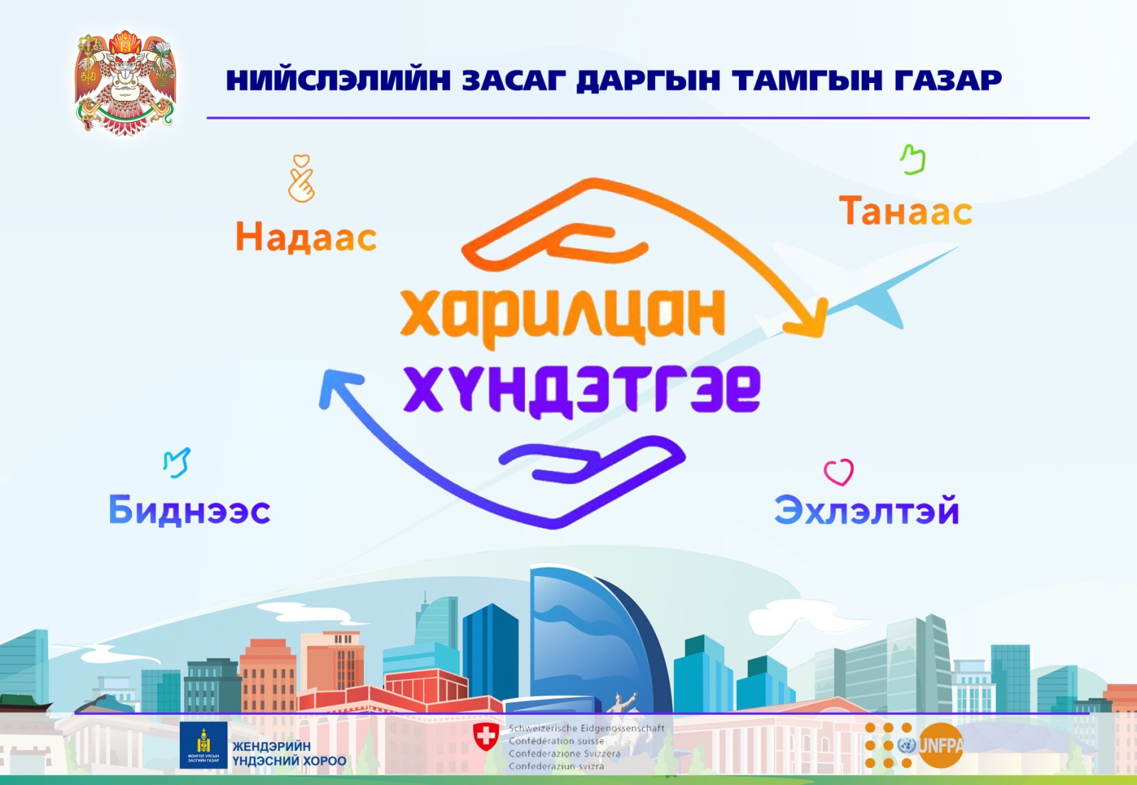 Монгол Улсын Засгийн газар, Жендэрийн үндэсний хорооноос “НАДААС, ТАНААС БИДНЭЭС ЭХЛЭЛТЭЙ” уриан дор зохион байгуулж буй “Харилцан хүндэтгэе” аянд НЗДТГ-ын албан хаагчид нэгдэж байна.