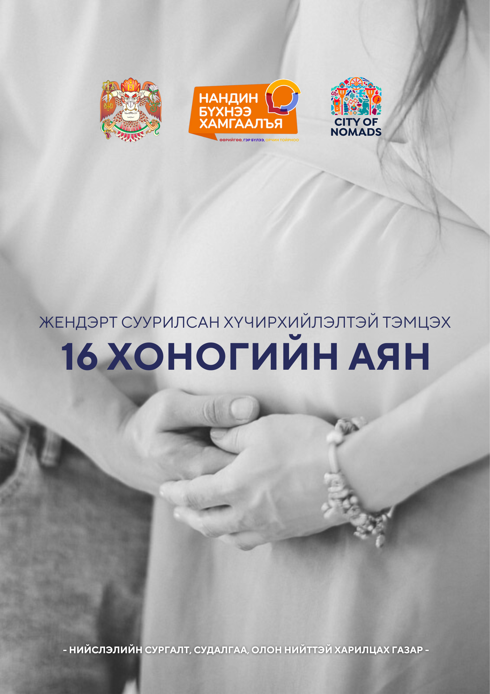 "Нандин бүхнээ хамгаалъя: Өөрийгөө, гэр бүлээ, орчин тойрноо" уриан дор зохион байгуулж буй жендэрт суурилсан хүчирхийлэлтэй тэмцэх 16 хоногийн аянд нэгдэхийг уриалж байна.
